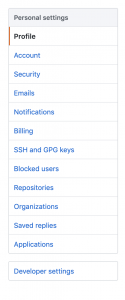 左側にあるメニューから、SSH and GPG keysをクリック
